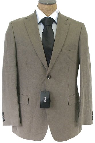 The Detailed Description of Hugo Boss Mens 2 Button Flat Front Solid Olive Linen Suit- Size 40LFeatures