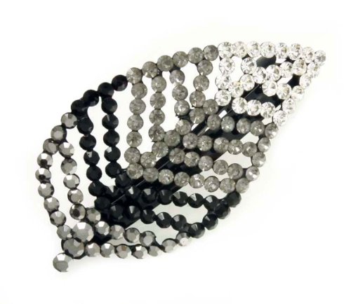 Hyper Autumn Leaf Hair Barrette measuring 2.5 x 1.5" with Clear to Jet Hematite Shade Leaf. Back Plating is Hyper Black Metal"