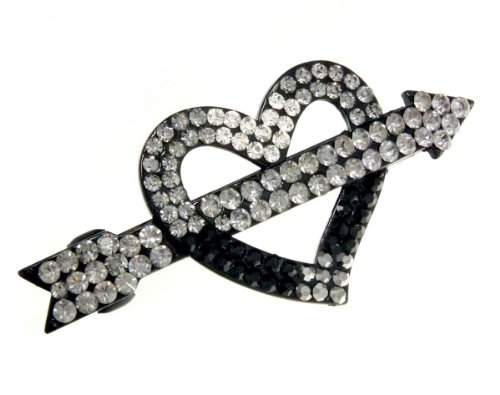 Hyper Heart In Detour Hair Barrette measuring 3 x 1.5" with Clear to Jet Hematite Shades Arrow and Heart. Back Plating is Hyper Black Metal"
