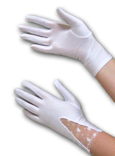 These sweet gloves will look great with your special occasion outfit. They are made of stretch matte satin with a nylon lace panel inset. One size fits most.