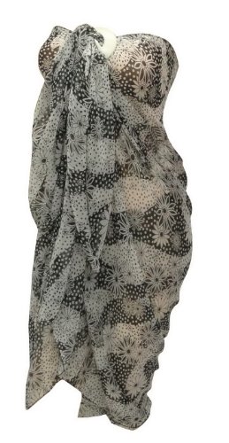 Allover Printed Black White Beach Sarong. Sheer Chiffon Material Sarong-Pareo.