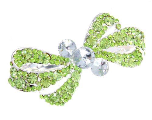 Knotted Charm Hair Barrette measuring 3.5 x 1.5" with Clear and Peridot Gems. Back Plating is Silver Plated"