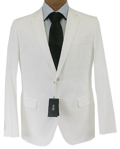 The Detailed Description of Hugo Boss Mens 2 Button Flat Front Solid White Cotton Suit- Size 44SFeatures